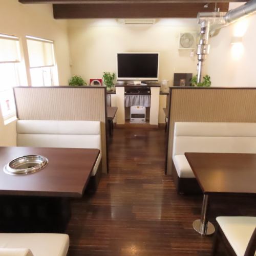 【ゆったりソファ席】ゆったりとした時間を楽しめる広々テーブル席。心地よい空間で、美味しいお肉を存分に味わっていただけます♪お子様連れのお客様も大歓迎◎ご家族でのお食事にもぜひご利用ください!